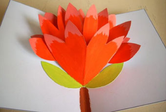 Wycinamy łodyżki, naklejamy je na kartkę. Doklejamy do nich kwiatki, Zawiązujemy i przyklejamy kokardkę. W środku wpisujemy życzenia.