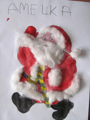 Mama napisała: Mikołaja tak sobie wyobraża Marta, która bardzo lubi wszelkie prace plastyczne, więc praca powstawała z przyjemnością ;)